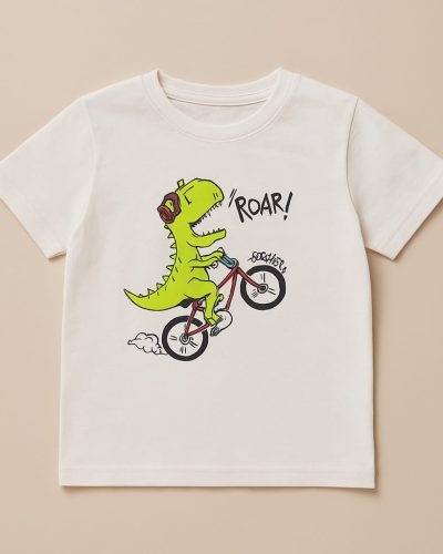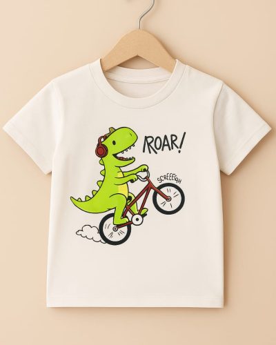 Dino Rider T-Shirt for Kids – White