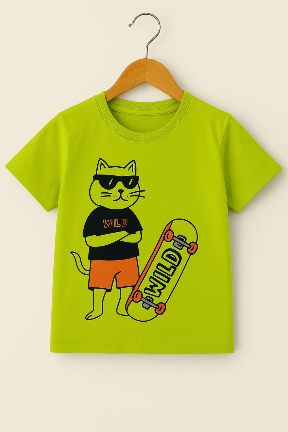 Make your little one stand out with the Cool Cat Skateboard Kids T-Shirt! Designed for kids who love trendy and playful outfits, this bright neon green T-shirt features a fun print of a cool cat with a skateboard, adding a sporty and stylish vibe. Made from a soft and breathable cotton blend, it ensures all-day comfort while keeping your child looking trendy. Ideal for casual wear, playdates, or outdoor fun, this T-shirt is a must-have for kids who love to express their adventurous spirit.