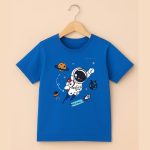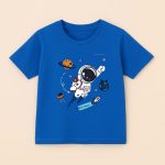 Fuel your child’s imagination with this vibrant blue t-shirt featuring an adorable astronaut and a fun space-themed design. Perfect for little explorers who dream of soaring through the stars.
